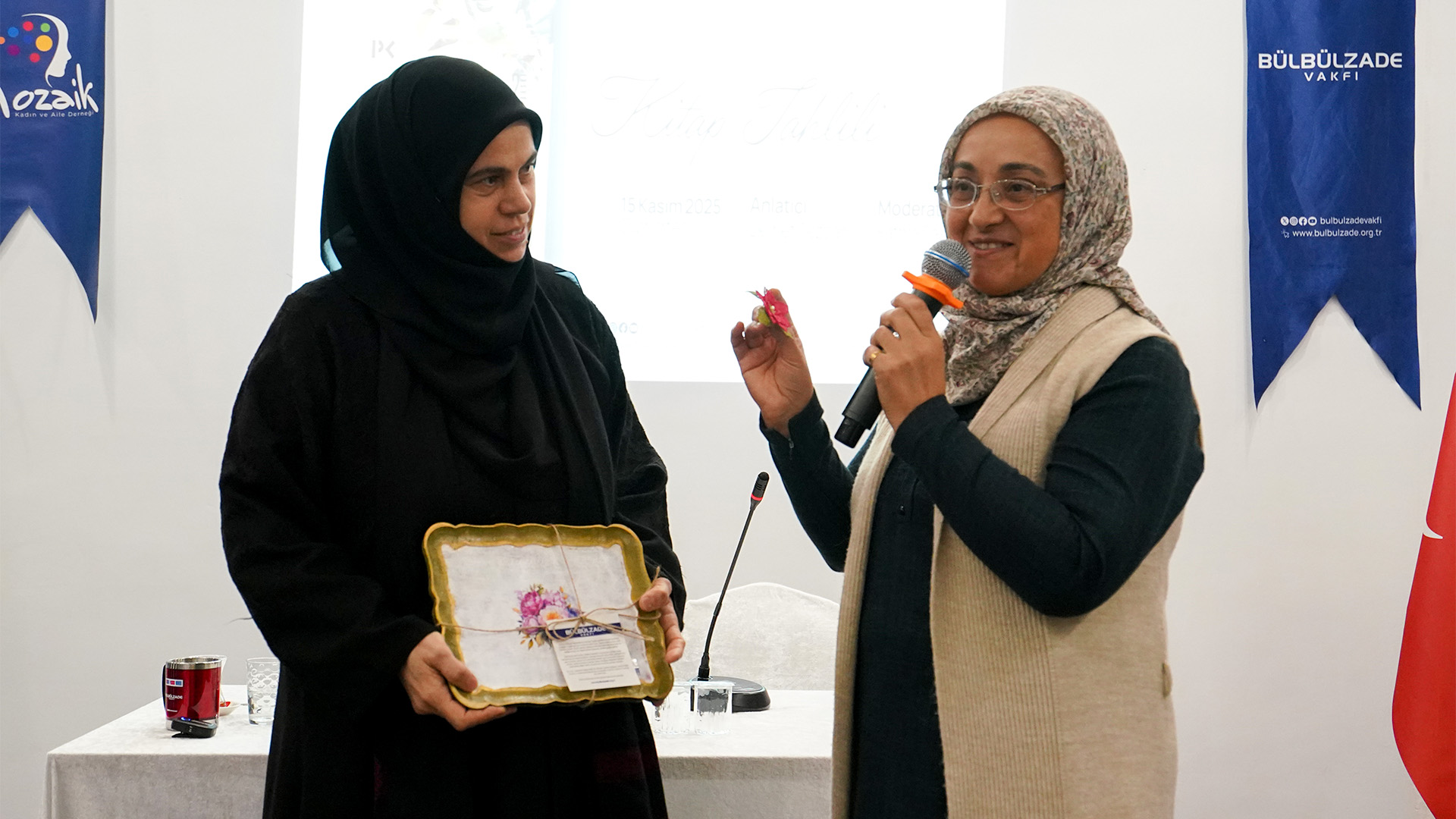 Moderatörlüğünü Fatma Temizer’in üstlendiği programa, eserin yazarı Demet Tezcan da katıldı. Zade Life Otel’in konferans salonunda düzenlenen etkinliğe, Bülbülzade Vakfı gönüllülerinin yanı sıra çok sayıda kitapsever yoğun ilgi gösterdi. Kitap tahlili, katılımcıların yönelttiği sorular ve yapılan değerlendirmelerin ardından, okuyucuların kitaplarını imzalatmasıyla sona erdi.